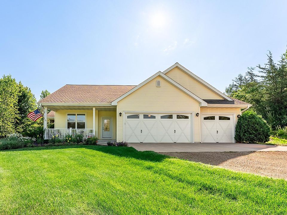 Welcome to your private oasis nestled in the heart of Wisconsin's pristine countryside. This stunning 3 bedroom, 3 bathroom home offers unparalleled seclusion and tranquility, surrounded by acres of nature and wildlife. As you enter you will be greeted by an open-concept living space and large windows that frame breathtaking views. The chef's kitchen is a masterpiece, featuring stainless steel appliances and custom cabinetry, perfect for entertaining. Step outside to a spacious screened porch, where you can relax with a cup of coffee or watch deer and other wildlife in their natural habitat. The backyard has a large patio and is fully fenced and ready for your dog to roam free while enjoy the serene environment. Additional features include a cozy fireplace, hardwood floors and a finished basement with plenty of room for a home gym or media room. There are two sheds on the property to store your extra toys and tools -- a 12 x 18 with a concrete floor and an 18 x 10 with a gravel floor. Despite its secluded feel, this home is conveniently located 10 minutes north of downtown Hudson and just a stone's throw away from Willow River State Park.