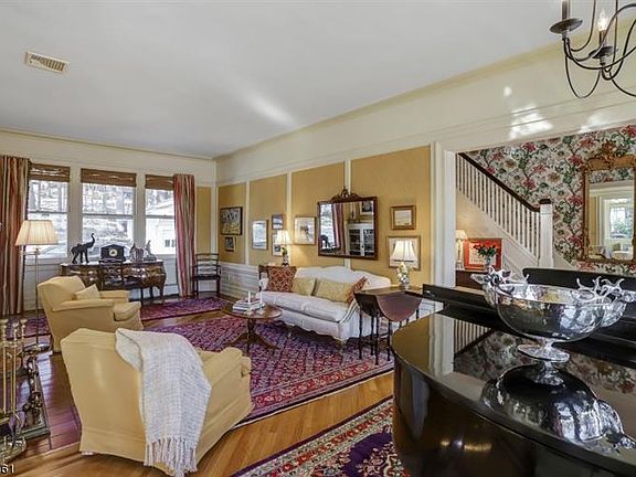 Resting on over an acre of beautiful property, this gracious 1923 Colonial is certain to turn heads! Home overlooks a sweeping front lawn and is perfectly situated. Close to town and train! Through double French doors you enter a gracious front foyer, revealing the large living and dining rooms. Old world charm abound, blending with the new... Ribbon inlay, 10 foot ceilings, exquisit moldings, coffered ceiling, lead glass windows... Sunny sun porch awaits you with stunning views of the surrounding property. Large updated eat-in-kitchen, high-end appliances! 5 bedrooms, master en-suite, 3 full baths and powder room, beautifully finished walk-out basement, and a spacious walk-up attic waiting for your touch to complete! Features a 2-car garage and stunning wooded backyard! Charm and elegance! Come visit!