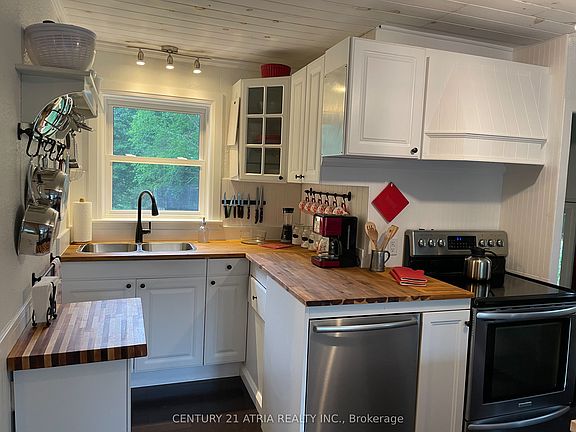 Welcome to 469 Rowanwood Rd in Huntsville-an exceptional opportunity to lease a fully upgraded, waterfront-access cottage home in Muskoka. This bright, modern 2-bedroom residence offers compact, efficient living with direct access to Lancelot Creek, Penfold Lake, and Mary Lake. Perfect for year-round living, weekend escapes, or a peaceful remote-work retreat. Step into the spacious, sunlit mudroom featuring an entire wall of organized storage for all-season gear-ideal for active outdoor lifestyles. The open-concept kitchen, dining, and living area is filled with natural light from multiple windows, creating a warm, inviting atmosphere. The kitchen is designed for functionality with excellent cabinetry, abundant storage solutions, and stylish wall-mounted shelving. Two comfortable bedrooms include full wardrobe closets for maximum space efficiency. A spotless 4-piece bathroom with a tub is perfect for rinsing off after a day on the lake. Enjoy true Muskoka waterfront living with canoe and kayak access from Lancelot Creek into Penfold Lake, plus direct boating access into Mary Lake. From the refurbished dock, the depth accommodates various watercraft, and you're only minutes by boat from Port Sydney's beautiful beach and charming village amenities. Additional features include a brand-new cedar sauna for private relaxation and space prepared for a future bunkie-great for extended family or visiting guests. This rare rental offers 40 miles of boating at a fraction of typical Muskoka prices. Perfectly maintained, move-in ready, and surrounded by nature, this property provides the ideal blend of convenience, comfort, and waterfront enjoyment. Simply arrive and start living.
