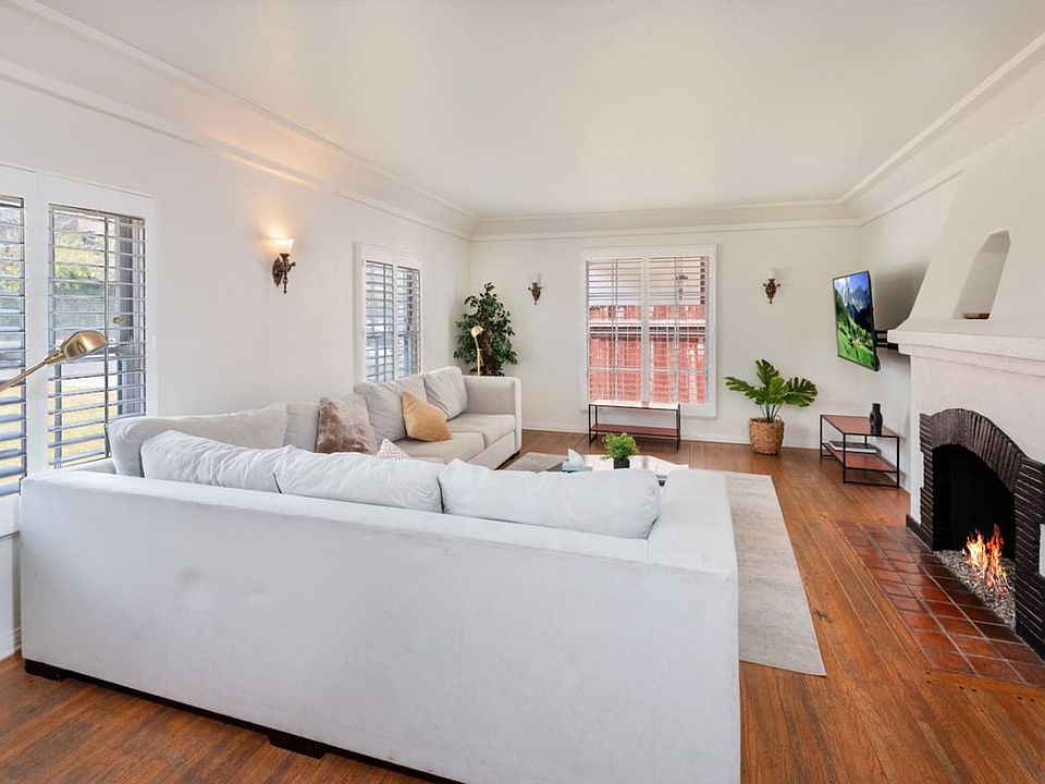 Discover unparalleled luxury in this exquisite 5-bedroom, 2.5-bathroom house, tailor-made for families and groups seeking a blend of comfort and sophistication in the vibrant heart of LA. Feel at home in the meticulously crafted interior, designed to offer both space and elegance. Each bedroom is thoughtfully furnished for your utmost comfort, featuring a king-size bed in the master suite, a queen-size bed in the second, third, and fourth bedrooms, and two full-size beds in the fifth room. With plush linens and cozy decor, a good night's sleep is guaranteed for everyone. The property boasts modern amenities such as a washer and dryer for added convenience, a fireplace for cozy evenings, and free parking for hassle-free access. Stay connected with fast internet throughout the house, ideal for remote work or streaming your favorite shows. Enjoy the California sunshine on the balcony with outdoor furniture, perfect for morning coffees or evening relaxation. The top-line kitchen amenities make cooking a breeze, while the bathtub provides a luxurious retreat after a day of exploring. Located in a safe and secure area, you can unwind and enjoy peace of mind during your stay. Whether you're visiting for business or pleasure, this 5-bedroom retreat promises a memorable and comfortable experience in the vibrant city of Los Angeles.