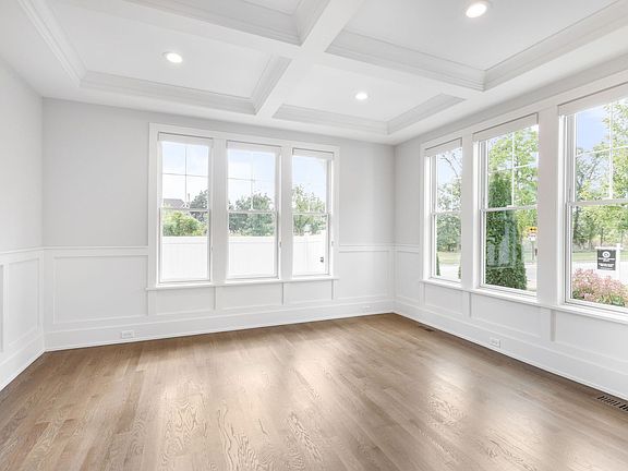 Set on a quiet, tree-lined street and just steps from the Prairie Path, this beautifully landscaped and superior crafted corner lot home offers exceptional quality and an unbeatable location. Built on an oversized 85x140 (irregular) lot, it boasts stunning millwork, hardwood floors, and custom details throughout. The bright kitchen with quartz counters, high-end appliances, and an oversized island opens to a sunlit family room with a 48" fireplace. A private first-floor office and a thoughtfully designed mudroom featuring a utility sink, and outdoor access add function and style.Upstairs, the luxurious primary suite includes hardwood floors, walk-in closet, and a spa bath. Spacious secondary bedrooms feature custom-height ceilings and great closets. This floor also has a convenient second-floor laundry room. The finished basement offers a large rec room, custom cabinetry , bedroom, full bath, and bonus room. This home features a large 3-car garage equipped with epoxy floors a party door that leads to a beauitfully landscaped yard and features a huge 740 sq ft patio for all you entertaining needs. Close to shopping, dining, & expressways.