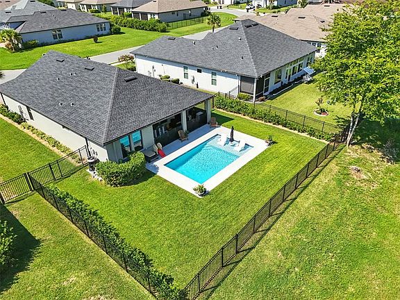 Welcome to this beautifully upgraded POOL home in the highly coveted gated community of Bellechase. This residence offers a perfect blend of comfort, style, and outdoor living and is one of the lowest priced 4-bedroom pool homes in SE Ocala. Step into your private backyard oasis featuring a 14x24 saltwater pool with a sun shelf and a pool heater/chiller—ideal for year-round enjoyment. Located on an exterior lot with no rear neighbors, the new owners are sure to enjoy the additional privacy. Inside, the home boasts 4 bedrooms and 3 full bathrooms with custom upgrades throughout, including a custom entertainment center, a stylish bar, and a custom built-in closet system creating both function and character in every space. The kitchen is well appointed with stainless steel appliances, a built-in gas range and large center island. The butler's pantry and walk-in pantry with built-in shelves provide ample storage and counter space for any meal prep or entertaining needs. The primary bedroom is a luxurious retreat just off the main living area with a large walk-in closet, ensuite bathroom and water closet. The second and third bedrooms have a jack and jill bathroom with dual vanities, perfect for growing families. The fourth bedroom and adjacent bathroom make for an ideal guest room, home office or flex space. Additional features of this smart home include a Ring doorbell and security system, leak detection, wifi enabled irrigation system and wifi garage door opener. With its open layout, upgraded finishes, and incredible outdoor retreat, this property is move-in ready and designed for both everyday living and entertaining. Built in 2022 and the pool in 2024, the new owners will enjoy peace of mind and minimal maintenance for many years to come. Located in a desirable Ocala neighborhood, this home provides convenient access to shopping, dining, schools, and medical offices. This home is only 10+ minutes to downtown Ocala and less than 30 minutes to the World Equestrian Center. Bellechase is a premier tree-lined private community with a staffed security entrance, beautiful winding roads, miles of paved walking trails, pavilions and rolling hills set amongst a lush landscape. Don’t miss the chance to make this stunning home yours—schedule a private showing today!