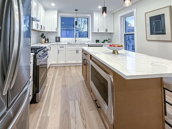 New construction 2-family in Chelsea’s Prattville featuring 6 beds 3 in each unit, 2 primary suites, 2 additional full baths, and 3 half baths across two modern townhouse-style units. Each home offers solid white oak hardwood floors, high-end LG appliances, quartz countertops with full quartz backsplashes, and open-concept living with finished lower levels and private outdoor spaces, including roof decks with head house access. ERV systems provide enhanced indoor air quality. Prime commuter location with easy MBTA access, including the nearby Silver Line to Logan Airport and downtown Boston, plus quick connections to the Tobin Bridge, Route 1, and Route 16. Wired for an EV charger.
