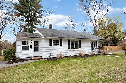 Adorable & affordable, North Andover's best value! This open concept ranch sits perfectly on a 16,000 sf corner lot with mature plantings and partially fenced area in backyard. Charming entryway allows versatility for sunroom or mudroom use. Bright spacious kitchen with peninsula open to dining area with plenty of natural light, great space for entertaining. Living room is oversized with hardwood floor and bumped out entry leading to covered porch for added curb appeal. 3 generous sized bedrooms, with more hardwood flooring, nicely situated to the rear of the property. Conveniently placed full bath between kitchen and bedrooms completes the main living space. Bonus of partially finished lower with 1/4 bath and exterior access. Centrally located in desirable North Andover with close proximity to downtown shops, commuter rail and major highways. Showings start Saturday 4/17 by appointment only. All offers due by Monday 4/19 at noon.