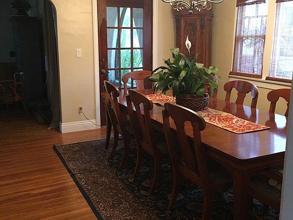 1935 Classic Spanish Home in San Diego, El Cerritos, College area. Great neighborhood centrally located to metro San Diego. Close to all military installations. Home has old world charm with hardwood floors throughout and mahogany built-ins. Great home for entertaining. The formal living room and dining room are large in size. House is UNFURNISHED. 2 Story House, 4 Bedrooms and Bonus/Sunroom and 2 Bathrooms, 4th Bedroom on Main level with attached bathroom. There is an eat-in nook off the kitchen. The kitchen has a large walk-in pantry. The laundry room is also off the kitchen. Has a balcony with views, a fenced back yard and a covered patio. There are 2 large detached garages, one with an automatic garage door opener and the other great for storage or play area. Includes Kenmore gas stove/oven, Kenmore refrigerator, window treatments/blinds, Kenmore front loading washer/dryer. Close to SDSU, trolley station, and bus stops. El Cerrito is a unique neighborhood with eating cafes in walking distance as well as Trader Joes and restaurants .5 miles away. Family-friendly neighborhood. Please do not disturb tenants. BY APPOINTMENT ONLY. Please email to set-up an appointment, No Walk-Ins accepted. 1-2+ year lease desired. Renter responsible for all utilities. No smoking allowed. Dog allowed upon approval but no Cats. Yard maintenance is provided by the landlord, bi-monthly service.
