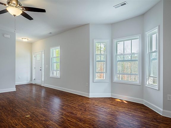 Looking for a private home in the woods but close to the lake and town!? This three bedroom, two bathroom home is on almost 5 acres in a private country setting! This 2019 home sits on a small grassy knoll surrounded by trees. As you walk into the huge great room, there are many windows letting in tons of natural light. The living room, dining area and kitchen are all open concept. The kitchen has lots of cabinets and cabinet space, a large island, all appliances and a walk in pantry! The primary bedroom has two closets, a large ensuite bath with dual sinks, soaking tub and full shower. The second full bath is in the hallway across from the second and third bedrooms. Both bedrooms are larger and have full sized closets. The laundry closet has extra storage shelves and other storage can be found in the linen closet and utility closet. This home has 9 foot ceilings throughout. The ultimate in privacy yet close to Lake James and only 10 minutes to downtown Morganton!