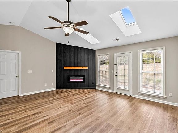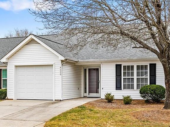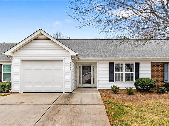Adorable one-level townhome located in the Stratford Green community. This home is open and airy with updated luxury vinyl plank flooring and paint in the living room (2024). The kitchen cabinets are bright with granite countertops, under-cabinet lighting, and a newer stove (2024). A modern accent wall with an electric fireplace makes a perfect focal point for a cozy sitting area. The primary bedroom is spacious with a great closet space and an ensuite bath with a step-in shower. Outdoors you have a nice grassy area with a patio for relaxing and getting fresh air. A newer garage door was added in 2023. The washer and dryer convey with the property. Great location convenient for getting around the Triad. This is such a lovely community you are going to love living here!