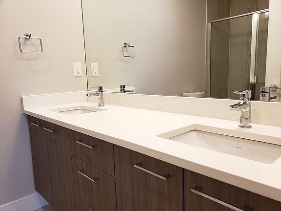Welcome to Coast at Tsawwassen Shores a vibrant seaside community offering a blend of comfort, style, and convenience. This bright 2 bed + den, 2 bath ( 880 sq.ft.) home features an open-concept layout, stainless-steel kitchen with quartz countertops, laminate floors, spacious bedrooms, and a private balcony with scenic mountain views. The functional den is ideal for a home office or storage. Includes 1 secure parking stall + 1 storage locker. Residents enjoy a clubhouse, fitness centre, landscaped courtyard, and playground. Steps to Tsawwassen Mills, schools, trails, and Highway 17. Pets allowed (max 2), no smoking/subletting. Tenant pays BC Hydro/internet; move-in fee applies.