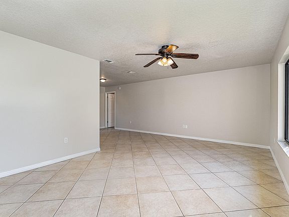 Fully Remodeled including new roof 2023, this single-family home offers 1,516 sq feet with natural light throughout and attractive contemporary design. Gorgeous quartz kitchen countertops, soft close drawers and cabinets, stainless steel electric range, dishwasher and microwave. This split floorplan features ceramic tile throughout for beauty and durability. Ceiling fans, a freshly painted interior, new light switches, floorboards, and towel racks, adding a touch of sophistication in every detail. Floor plan features formal dining area, living room, and flex/den/breakfast nook space. Primary bedroom with ensuite bathroom with walk-in closet and pocket closet, custom shelving, new cabinets and large shower. Spacious backyard with attached screened-in lanai. (6' tall) newer privacy fencing. Attached 2-car attached garage/opener. Roof 2023. A/C 2019, W/H 2016. Easy central location with fast access to 528 Tollway, beach, port, NASA, Blue Origin & Kennedy Space Ct
