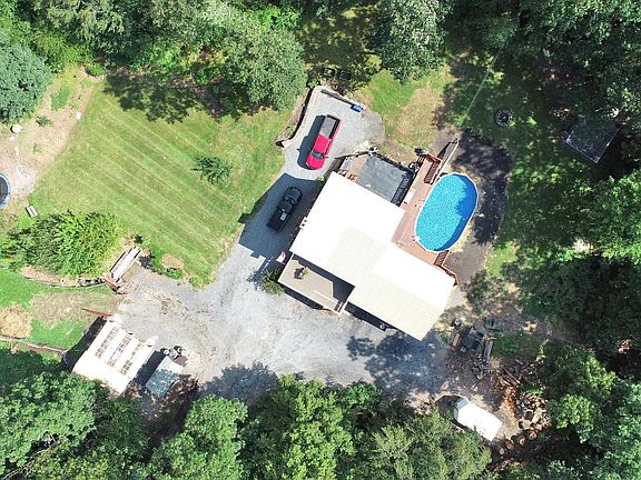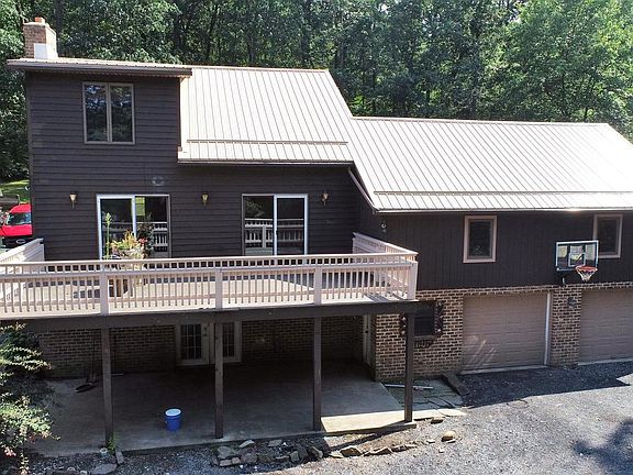 This Stunning home is situated on 7.78 Acres. Private wooded with pastures and trails. The house exterior construction is Cedar siding, brick and a brand new metal roof with gutter guards. Huge front deck with awesome views. Rear deck with a beautiful salt water pool. 5 Out buildings come with this property. This 1.5 story home has open floor plan with kitchen, dining and great room. Cathedral ceiling gives it a nice feel to the space. Two sliders walk-out to the front deck. 1st floor offers bedroom, full bath, walk-in pantry, super sized bonus room and 1st floor laundry. The bonus room could be used for another great room, game room(pool table, ping pong) or office. Wide staircase goes to the 2nd floor with two bedrooms and full bath. Features are casement windows and wood trim. Exposed finished lower level with another family room, possible bedroom and 2nd laundry. Attached oversized two car garage with heater. Security system conveys. Ideal land for horses, cows, chickens, goats and much more. Great location! Just minutes to Silver Springs for shopping & dining in Mechanicsburg and about 15 minutes to Carlisle. This home offers a nice amount of land, construction of the house and the out buildings for the price!!! Hurry!!! Don't delay to schedule a showing today!!!