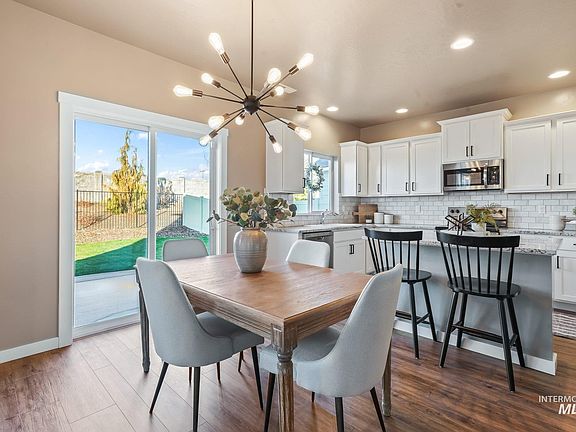 Built in 2018, this 4 bed, 2.5 bath home offers 1,841 sq ft of thoughtfully designed living in Meridian’s desirable Trilogy subdivision. Soaring vaulted ceilings, open-concept spaces, and natural light create a bright and inviting main level, anchored by a gourmet kitchen with granite countertops, stainless steel appliances, a large island, tile backsplash, and walk-in pantry. Upstairs, you’ll find all four bedrooms, including a spacious primary suite with dual vanities, walk-in closet, and privacy from secondary rooms. The fenced backyard is perfect for relaxing or entertaining with an extended patio, dedicated grill/smoker pad, and irrigation ready for raised garden beds. Added privacy with no front or rear neighbors. Community features low HOA dues while offering proximity to Costco, schools, restaurants, parks, and shopping. A modern, move-in ready home with a functional layout and upgraded finishes—perfect for a variety of lifestyles and investment opportunities.