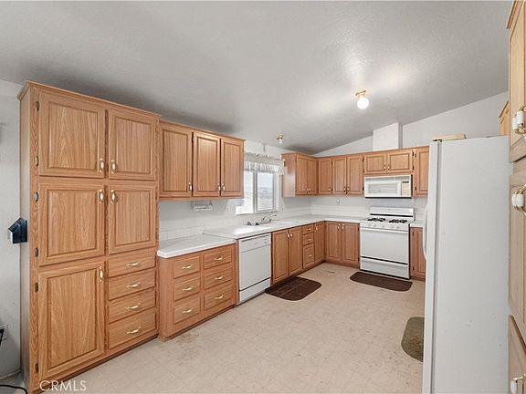 Home:3 bedrooms, 2 bathrooms, large kitchen with a breakfast nook and a large dining room. The living room features wraparound windows for the perfect view of the lake and sunsets. The primary bedroom is massive, and features an en-suite bathroom and a retreat that would be perfect as a home office, sitting area or baby nursery. The laundry room is located inside and has washer and dryer hookups. You can also enjoys views of the lake from the front covered porch or the side covered porch. Cool down with an evaporative cooler or on the hotter days switch to central air. The home has a private well, conventional septic and is on permanent foundation making it easy to obtain a loan!