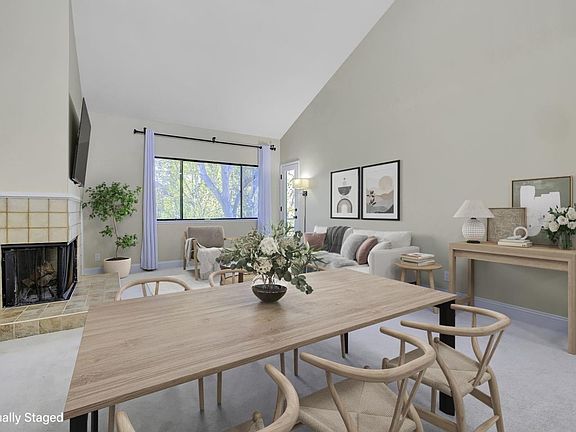 Welcome to 4691 Albany Circle #137, a spacious top-floor 1BR/1BA condo (813sqft) in The Plaza an inviting gated community in West San Jose near Apple Park and Santana Row. This move-in-ready unit features an open floor plan, vaulted ceilings, new carpet, central A/C, and a cozy wood-burning fireplace. The kitchen includes granite countertops, stainless steel appliances, a breakfast bar, and modern white cabinets. Enjoy upgrades like a Nest thermostat, Waterdrop RO filter, water softener, and new garbage disposal. The spacious bedroom offers a walk-in closet. Relax on your private balcony overlooking the complex. In-unit washer/dryer and 1 underground parking spot included. Community amenities: gym, heated pool/spa, elevator, and secured entry. Located in the Cupertino School District with easy access to Hwy 280, Lawrence Expy, and major tech hubs.