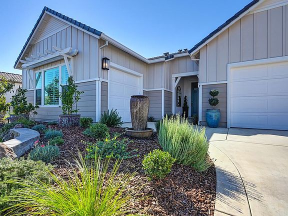 Heritage Placer Vineyards, Active 55+ Community! This stunning 3 bed, 2.5 bath home with bonus room, a former model, showcases over $175K in upgrades, including hardwood floors with custom inlay, plantation shutters, custom lighting, custom interior paint, designer bathroom flooring, and remote-controlled shades in every bedroom. The chef's kitchen boasts a massive island, quartz counters, designer backsplash, and pull-out cabinetry. The spacious primary suite includes a private retreat and a generously sized walk-in closet, while two secondary bedrooms are thoughtfully set apart for guest privacy. Freshly painted exterior with a tailored color palette, brand-new front and backyard professional landscaping, elegant outdoor lighting, and two tranquil fountains create a truly luxurious setting. Enjoy a built-in BBQ island and a brand-new Jacuzzi hot tub. Additional highlights include an oversized laundry room, 3-car garage with an extended driveway, and owned solar. Located in a private, gated community surrounded by oak trees yet close to amenities, residents enjoy pickleball, bocce, gym, indoor pool (outdoor coming soon), and scenic trails. A rare opportunity to own a beautifully upgraded, move-in ready home.