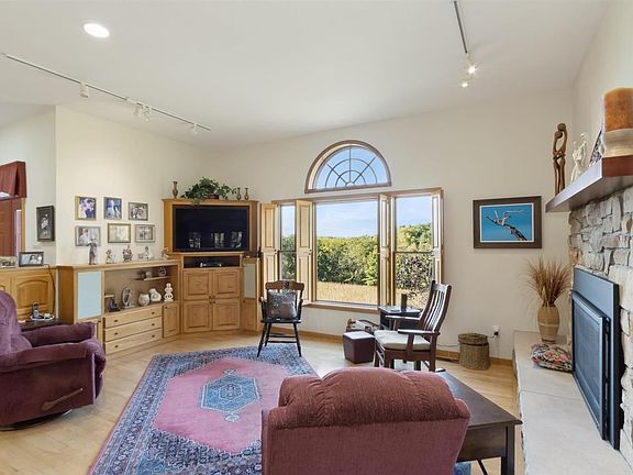 This beautiful brick and wood home is nestled in an idyllic, private 4.44-acre opening surrounded by tall grass and forest 13 minutes north of Iowa City. In its 2,663 sq. ft. are 4 BRs, 3 baths, kitchen, dining area, laundry, huge 3-season porch, family room, recreation/exercise room, storage/bonus room, & two additional storage rooms. A 560-ft. concrete driveway leads to a 2-car garage & guest parking. Among striking features of this home are: a skylight above the tiled foyer; a large palladium window w/ indoor shutters & an imposing limestone fireplace in the living room; fine cabinetry & an eat-in kitchen island w/ a gas stovetop, a built-in wall of fine storage & a bay window in the dining room w/ a door opening to a deck; floor-to-ceiling windows in the restful sunroom/3-season porch; & light hardwood floors throughout most of the main level, including the kitchen. The expansive lower level has: a family room w/ sliding glass doors to a patio; 2 BRs—one currently a library/study w/ built-in bookcases; a large recreation/exercise room; a full bath; & 3 storage rooms, one currently a hobby room. This large property is in excellent condition--beautiful inside & out with exceptional privacy as well as easy access to extraordinary amenities in the nearby Iowa City area.
