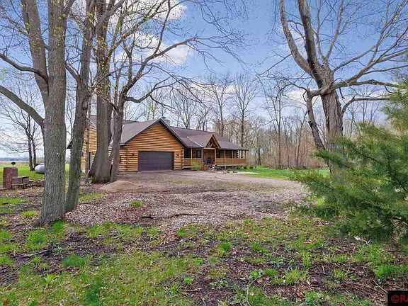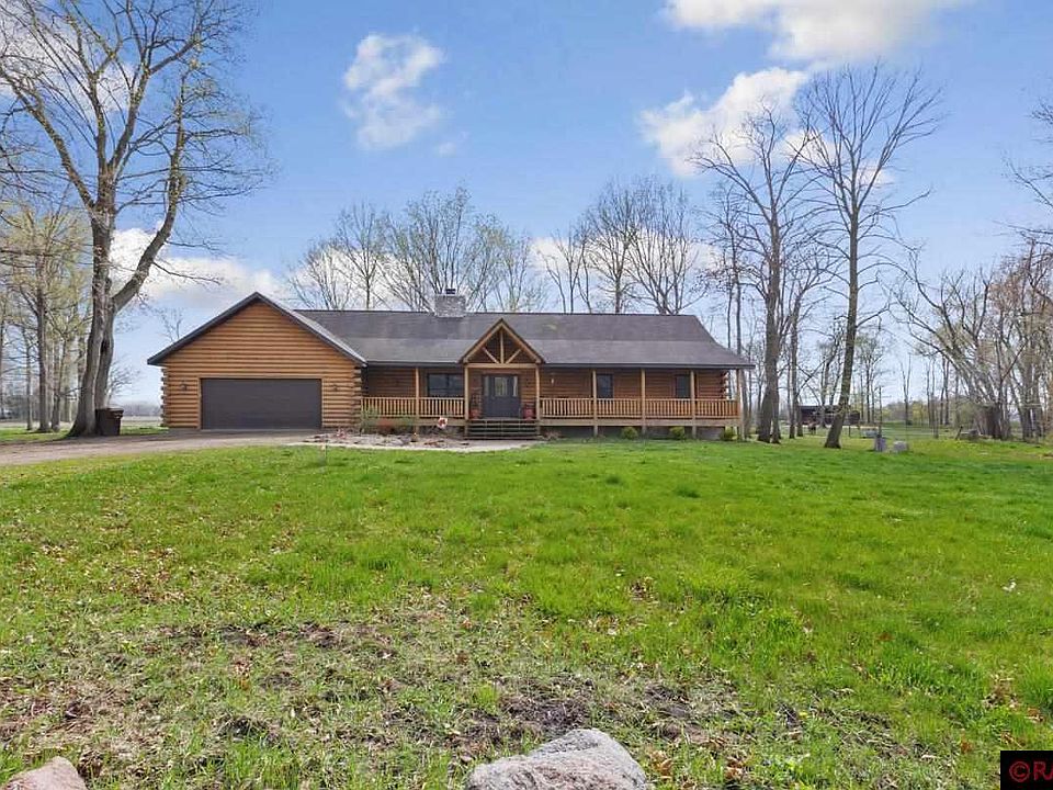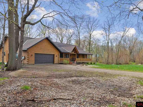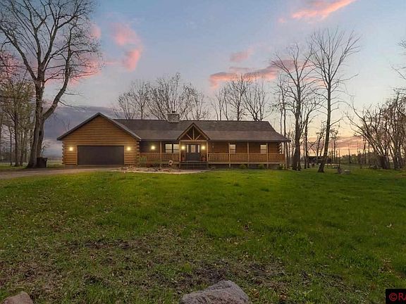 Beautiful custom-built log cabin home with ample space to spread out. A peaceful 12 acres, 6 acres of trees and 6 acres of open are ready for you to enjoy. Fenced in area perfect for horses, with 3 stall loafing shed. Gorgeous double sided fireplace ads a warm cabin feel to the living room and formal dining. RV 30 amp hook up off of garage, updated back deck, sprawling front porch, main floor laundry, first floor wheelchair friendly and electric vehicle charging options are just some of the many thoughtful features in this log home.