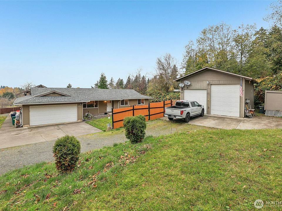 Your own private oasis on almost an acre in Enumclaw is here! Boasting 3 beds and 2 baths, this rambler provides tranquility and plenty of space on your own secluded lot. Features include luxury vinyl plank flooring throughout, new kitchen cabinets and backsplash, fresh interior paint, updated lighting, baths and more. Located in the Fairway Hills area with soaring views of Mt. Peak, the plateau and the Cascades, imagine having your morning coffee out on your custom covered outdoor patio perfect for year round entertainment. Energy efficient heat pump & AC. Also don't miss out on the detached 24 x 32 ft shop totaling 768 sq. feet that was turned into an additional living space for possible extra income or to use your imagination with!