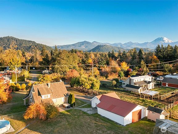 Entertainers DREAM Property in the Heart of Enumclaw. As you enter the home you'll immediately notice the attention to detail & craftsmanship that has gone into every inch of the property. This charming country farmhouse w/views of the Foothills & Mt. Rainier on 2.39ac boasts 2,668SF, 3bed, 2.25bath, primary on main level, living room w/gas fireplace, sunroom, den/office & dining room w/built in hutch! Exquisite kitchen w/custom cabinets, quartz counters & large pantry. Updated electrical & plumbing. This spectacular property features: Beautifully landscaped~ Abundance of parking~1,496SF Shop~2 Barns~8x12 Shed~Fruit Trees~Fully Fenced Pasture~Hot Tub~Pool~RV Parking+NO HOA! Perfect property to bring your animals & toys! Check out the video!