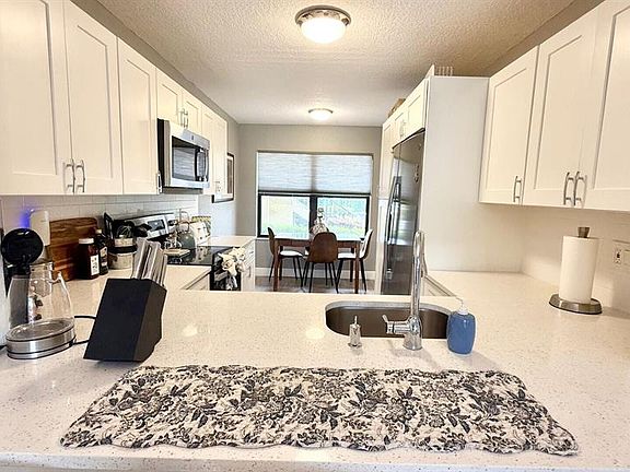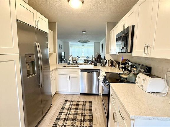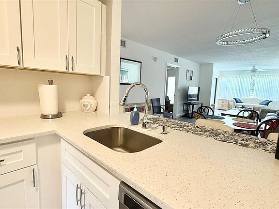 Bright and modern ground-floor 2 bedroom, 2 bathroom residence, fully equipped for a relaxing winter stay. The updated kitchen features sleek quartz counters and stainless steel appliances. Luxury vinyl plank flooring runs throughout the home, creating a clean and stylish look. Enjoy peaceful views of the garden and golf course from the screened patio enclosure. The spacious primary suite offers a large walk-in closet, while the split floor plan provides comfort and privacy for guests. Ideally located in a private setting just minutes from premier dining, shopping, and entertainment options.