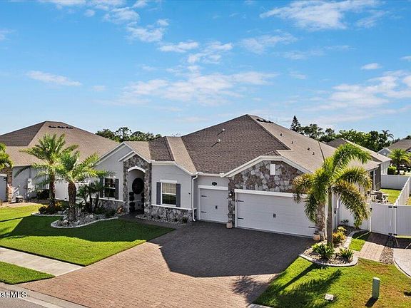 72 Hour Kickout Clause Welcome to 4692 Shannock in the sought-after community of Egrets Landing. Built in 2020, this custom-upgraded Maronda Livorno model offers 4 bedrooms, 3 bathrooms, a private office, and 3,122sqft of luxurious living with 11 Ft ceilings . Wood-look tile flows throughout the open layout, highlighted by tray ceilings, LED lighting, and striking stone accent walls. The gourmet kitchen features quartz countertops, double ovens, stainless steel appliances, custom lighting, and a large island. A 100'' electric fireplace creates a stunning living room focal point. The deluxe master suite includes built-in closet with a spa-like bathroom. Step outside to your private retreat—an oversized heated pool and spa with water features, smart controls, and dome-style cage. Additional features include a 3-car garage with epoxy floors, custom gym, office, framed mirrors, tropical landscaping, hurricane shutters, and more. Truly one of the most upgraded homes in North Merritt Island