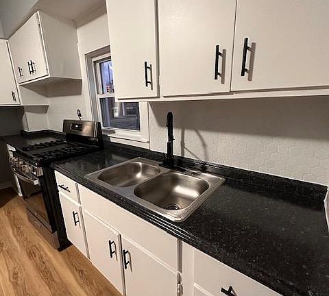 This compact Downstairs unit has a contemporary vibe with high ceilings throughout most of the unit. The unit has been updated with new Luxury Vinyl Plank flooring, lighting, fresh paint, kitchen appliances, countertops, bathroom vanity, faucets, and a new kitchen island with a vast butcher block. Enjoy this huge contemporary kitchen with an open floor plan in the living room. Convenient laundry room in the building.