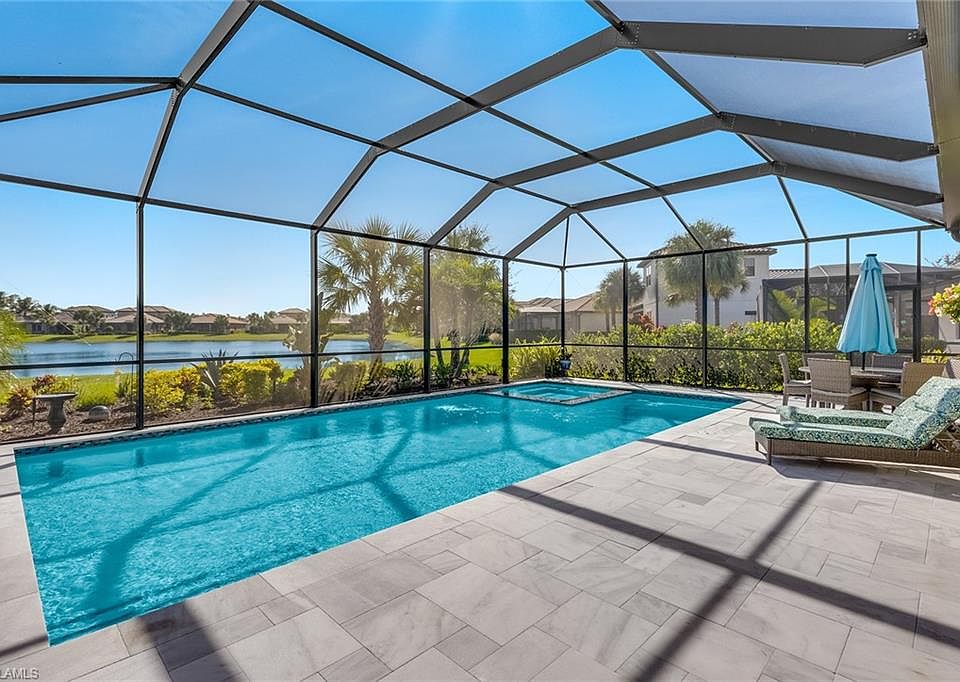 Step into luxury at this impeccably designed residence in North Naples at Raffia Preserve. This home sits on an oversized lot and boasts four spacious bedrooms and three bathrooms, each adorned with high-end finishes, including upgraded cabinetry, beautifully updated flooring, and designer lighting. Outside, discover your own private retreat featuring marble tiling throughout the lanai, a new sparkling pool and spa for relaxation, and an adjacent outdoor kitchen, perfect for entertaining. This home offers a perfect blend of functionality and luxury where every detail has been thoughtfully crafted to create a dream home. Conveniently located in North Naples, this exceptional home is close to premier beaches, shopping destinations, and restaurants, ensuring that homeowners can easily savor all that Naples has to offer. Residents also have the benefit of immersing themselves in a host of exceptional amenities, encompassing an expansive clubhouse, a resort-style pool, basketball court, and a state-of-the-art fitness center.