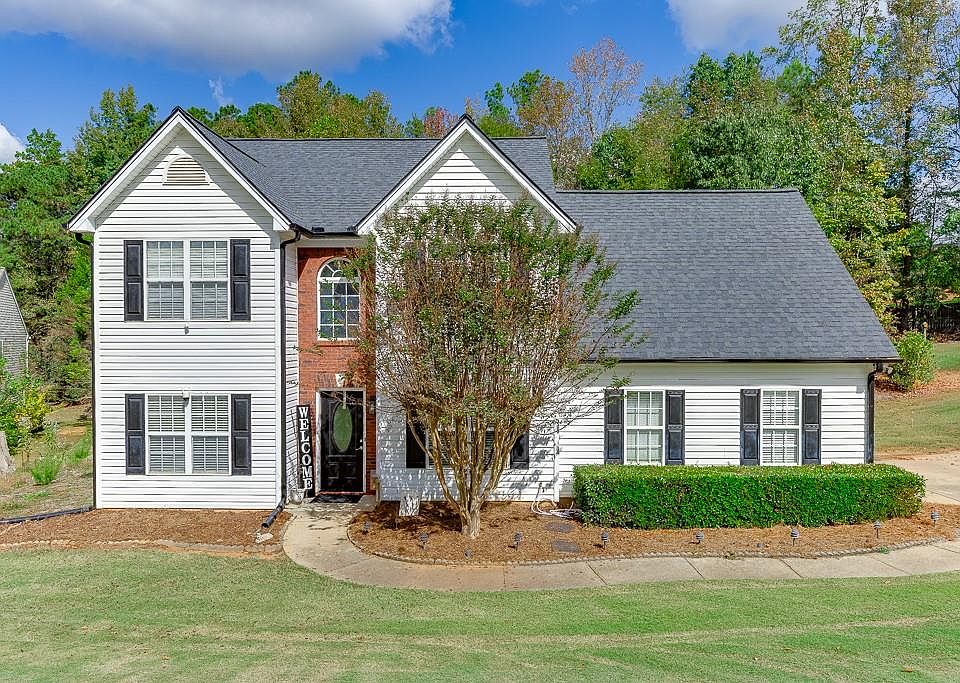 STOP BY SATURDAY, 10/18 1PM-3PM. This stunning home is situated on a spacious 1-acre double lot, nestled at the end of a peaceful cul-de-sac. A true entertainer's dream, the property boasts a fabulous deck pavilion, perfect for hosting parties or enjoying the big game. You'll also love the cozy firepit, plus a separate work building or "she shed" for all your hobbies or extra storage needs. Inside, the main level features a 2-story foyer, a dedicated office, a formal dining room, a convenient laundry room, and an eat-in kitchen that opens up to the light-filled living room. Upstairs, the spacious Master Suite offers his/her closets, dual vanities, and a separate tub and shower for ultimate relaxation. Three additional spacious bedrooms and a full bath complete the upper level. Location is key—just 10 minutes to schools, shopping, restaurants, and parks, with easy access to I-85 and I-985. Plus, you'll enjoy all the amenities that Weatherstone Park has to offer, including pickleball courts, a pool, playgrounds, and access to Duncan Lake for fishing, boating, and more! Don’t miss out on this fantastic home—schedule your tour today!