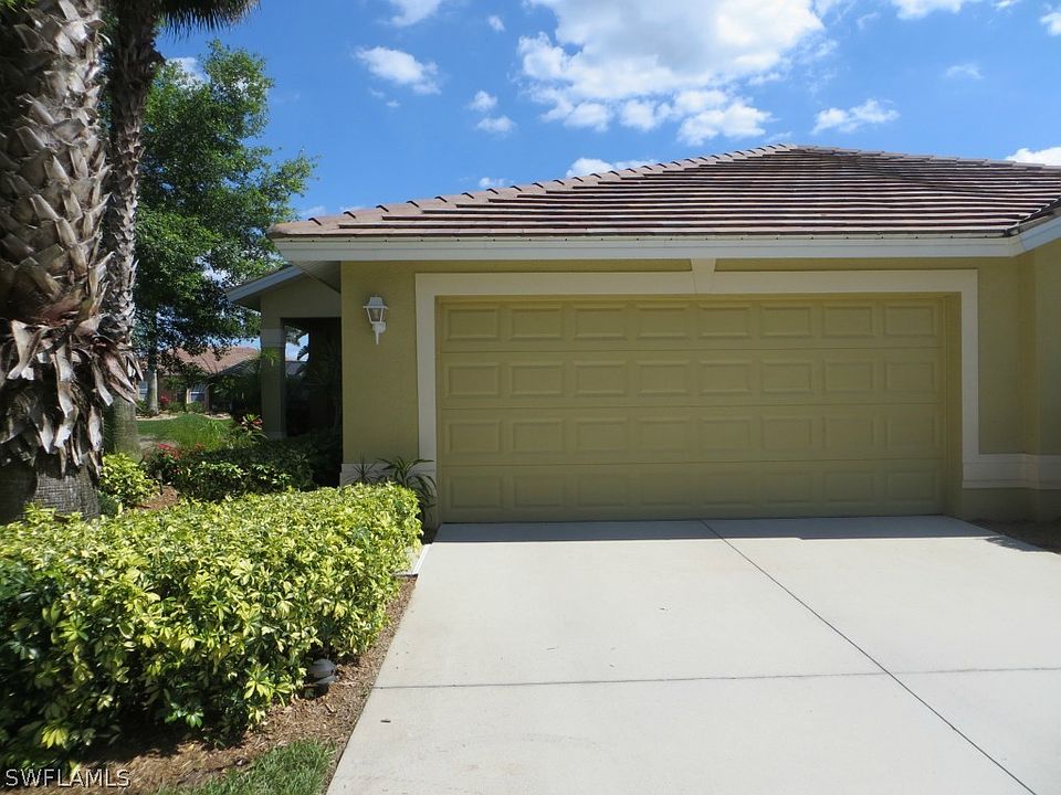 The perfect opportunity to own this attached villa in the pristine gated, 18 hole Championship golf course community of Westminster. This home has 2 bedrooms, 2 baths and a 2 car garage, and oversized screened lanai. Other features include large designer tile throughout and great views of the lake. The kitchen is wide open to the great room with solid surface counter tops. The master suite is large and comfortable with double sinks, large walk-in shower, & 2 closets that include one large walk-in closet. This is a golf course community with driving range/putting green that is open to the public with no membership fees, it is pay as you play. There is even a fabulous clubhouse with a great restaurant/bar, fitness center, tennis , heated pool/hot tub, billiard table and community room with kitchen. Lots of activities for your enjoyment. Shopping, restaurants, theater and beaches are all nearby. Only 20 minutes from SWFL International Airport, and 10 minutes from Red Sox stadium. About 2 minutes from Ft. Myers line. Also, allows up to two dogs. Community is guard/gated/fenced 24/7.