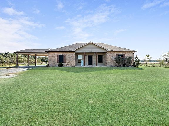 NEVER FLOODED! LCM ISD! This beautiful property with a pond for fishing sits just outside city limits on 6.20 +/- acres with 3 separate pastures, a 30x24 shop with dual 24x24 awnings, two 24x15 animal pens & an additional 30x15 covered area. This brick home has 3 bedrooms, 2 full bath & a true master. The covered front porch leads you into the spacious size Living-room with a take a few steps to the kitchen & breakfast nook, that flows seamlessly together. Warm laminate wood flooring in the main areas. The Kitchen has a double sink, stove, microwave, dishwasher, pantry, lots of cabinets & has room for your holiday gatherings. The hallway leads you to the full bathroom & 2 bedrooms, sizes (11x14 & 11x14) each with a closet. Split floor plan. Your large sized en-suite master w/shower/tub combo & 2 large walk in closets. Inside utility room. Enjoy the covered patio with a 24 x 16 cover porch and 9.2 x 24 wooden deck with a cup of coffee watching your animals. Don’t let this one slip by.