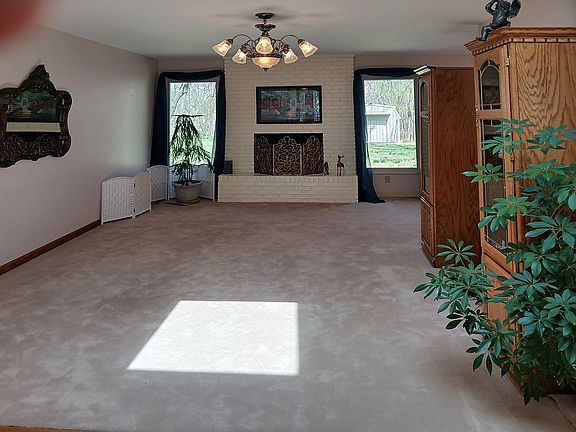 3 bdrm brick with mature trees, new roof with lifetime warranty , new heating and air, new spacious walk in shower beautiful bay windows, large wrap around desk, attached single garage, separate double garage with shop, hardwood,new carpet, vinyl,large fireplace, concrete drive, large storage building, 24 ft x41 ft barn, 10 ft x 12 ft laundry room,