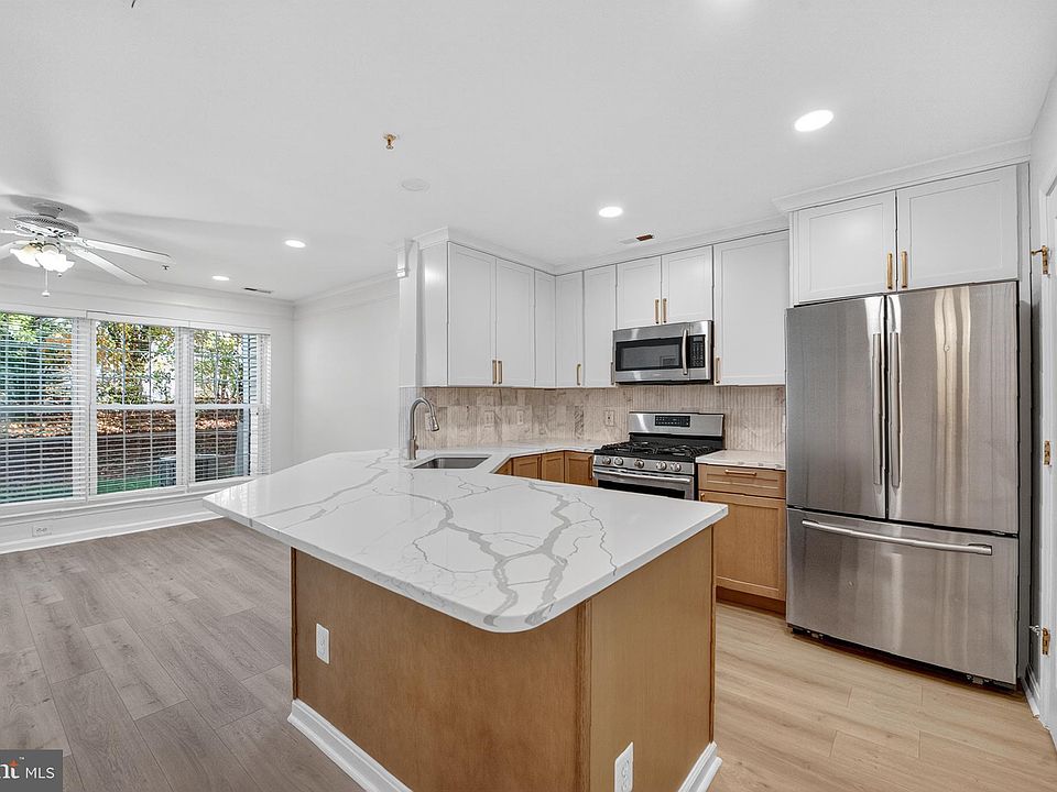 Step into this beautifully updated 2-level condo in the sought-after Chatham Green community of Sterling. Perfectly situated just minutes from Route 7, Dulles International Airport, and the Metro’s Silver Line, this home offers unbeatable convenience for commuters and travelers alike. The main level welcomes you with brand-new flooring, recessed lighting, a cozy fireplace, and a stylishly renovated half bath. The chef’s kitchen is a true showstopper, featuring quartz countertops, modern cabinetry, and upgraded appliances. The large peninsula is ideal for cooking and entertaining. Upstairs, you’ll find two spacious bedrooms, each with its own private en-suite bath. The primary bathroom was tastefully renovated in 2020, while the second bath received a full renovation in 2024. Don’t miss your chance to own this stunning move-in-ready condo in a prime location.