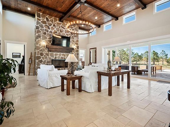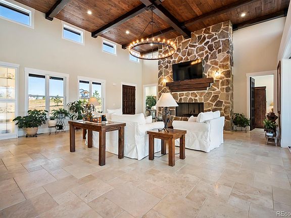 Beautiful Settlers Ranch. Located on the Palmer Divide 5 miles east of I-25 and Exit 158, this Mark Beery Custom Home showcases many features considered extras in other custom homes. Solid Oak 4'x8' doors, Travertine Tile surfaces and Hardwood Floors, custom Cabinetry and millwork, multi-slide Retractable Window Walls, an Outdoor Kitchen and Firepit, are standard features of a Mark Beery built home! Pikes Peak is your daily backdrop, morning glory or evening splendor set the tone for everyday living.