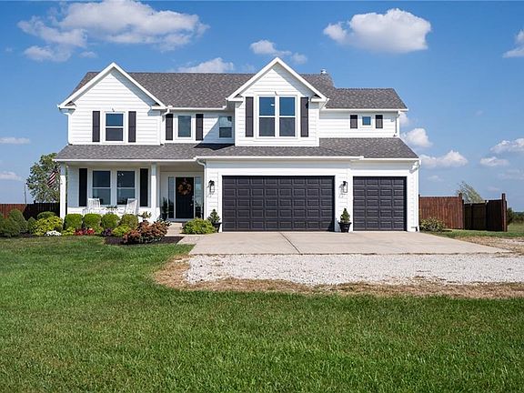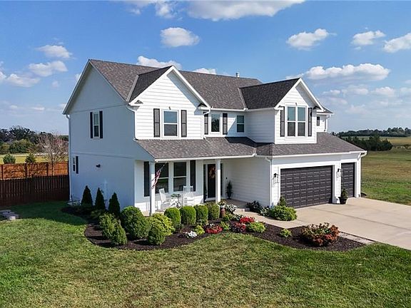 Inside, you’ll find a bright and airy floorplan with fresh interior paint throughout, a remodeled kitchen featuring painted white cabinets, and plenty of space to entertain or gather. The layout includes a spacious main-level living area, kitchen, and dining space, with all four bedrooms and the laundry room conveniently located on the second floor. The lower level is unfinished and ready for your personal touch—perfect for a rec room, home office, or guest suite. Step outside to enjoy wide-open space, mature trees, a privacy fence separating the home from the gravel road, and endless potential for gardening, hobbies, or outdoor entertaining. Located just minutes from I-35 with an easy commute to Olathe, Ottawa, or Lawrence, this move-in-ready home offers the best of both worlds—peaceful country living with modern amenities and no major projects left to do. Don’t miss your chance to own a stylish, turnkey home on acreage!