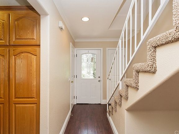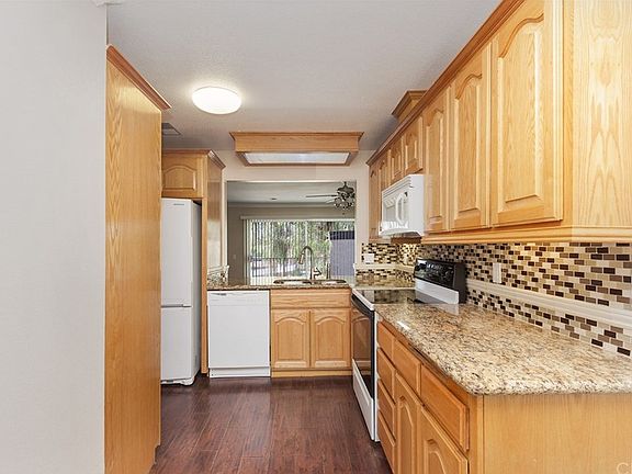 Upgraded unit located at the base of Mt. Rubidoux. Unit is a PUD. Walk or jog right out your front door to the Santa Ana River Trail or Mt. Rubidoux hiking trail. Enjoy the park-like feeling of the secluded courtyard (which is being redone. Plans are pending.) The unit has granite counters in kitchen and baths, crown molding in living room, kitchen , master bedroom, and entry. Custom tile baths. Located just outside of Downtown Riverside, enjoy the quiet atmosphere yet have easy access to shopping, culture and nightlife. Ryan Bonaminio Park featuring athletic fields & courts, a playground, picnic shelters & concessions. Unit has 2 car attached garage. Refrigerator, stove, washer and dryer included in sale. Complex has a community pool for resident use and HOA fees are low at just $270.00 per month. The furnace and central air unit has been replaced. Also, unit has ceiling fans and recessed lighting.