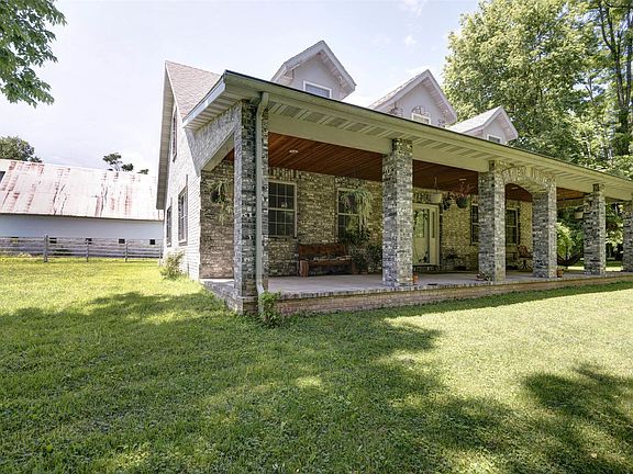 Porch swing on the huge covered porch of this beautiful 3 bedroom, 2.5 bath 10+ acre mini-farm on the outskirts of town. Energy efficient Nudura insulated concrete form construction. Huge kitchen/dining w/beautiful cabinets, tile back splash, spacious living room, Master suite w/walk-in closet, double vanity, jetted tub, stand up shower & some of the neatest tile work you can find. Upstairs is where you will find the character you have been waiting for with loft with custom maple floors & charter trim/siding from the original 1880's home that was originally on the property. Wonderful tile work & barn wood cabinet in the guest bath, beautiful pine door. Huge laundry/mud room, sun room w/cellar below great for a storm shelter.
