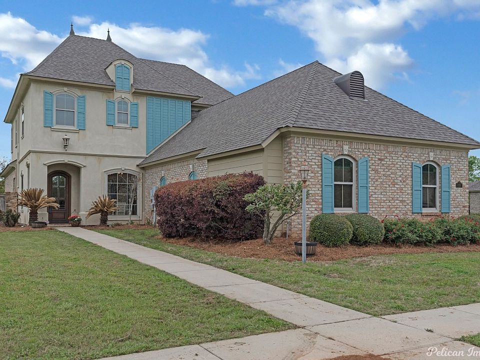 HAS ALL THE *I WANTS*! Fantastic French Country style home located on a large stocked pond*Four huge bedrooms plus an awesome bonus room with a balcony that overlooks the pond*Hidden panic room*Downstairs Owners Suite features a huge walk in closet, double shower and dual vanities, plus super size soaking tub* kitchen features an industrial double oven plus a single built in oven on the spacious island*Custom cabinetry thru out*Outdoor Kitchen on back porch allows views of the backyard and pond*Beautiful brick and wood flooring, Tall ceilings and open floor plan*Crown moldings and wains coating thru out*Fresh paint and new bathroom fixtures*Oversize three car garage*two tankless water heaters, SPRAY FOAM INSULATION, and nest thermostats. This is a great property*NOTE: REALTOR.COM shows this property in a flood zone! It DOES NOT REQUIRE FLOOD INSURANCE!!