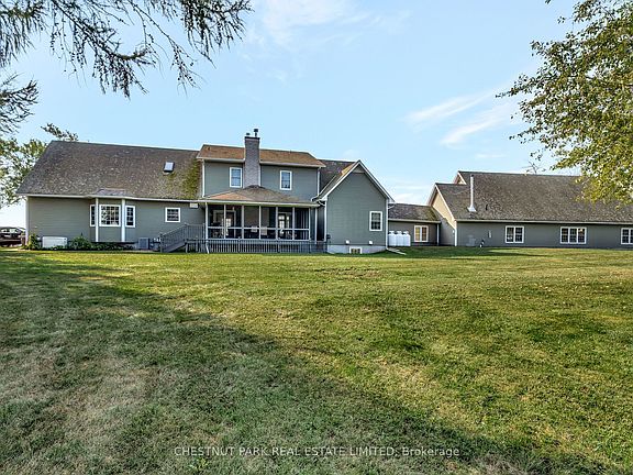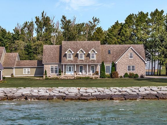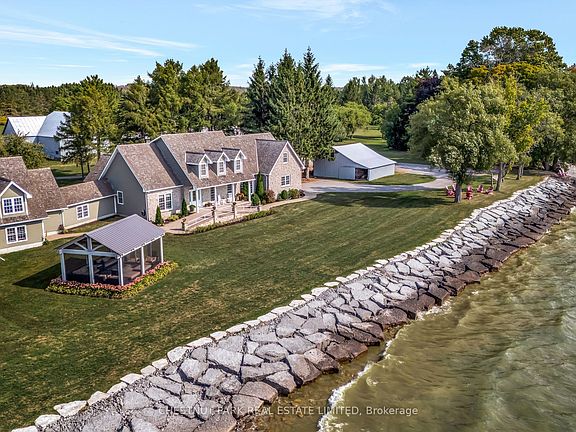 Experience the ultimate waterfront luxury at this stunning estate. Nestled on almost 9 acres of pristine land with breathtaking views of Lake Ontario.This private, secluded retreat offers tranquility and sophistication in every detail, with close to 7,000 sq ft of beautifully renovated living space that blends classic elegance with modern comfort. The home features a brand new gourmet kitchen inspired by mid-century luxury design rich wood accents, Dekton countertops, and abundant storage create a warm, inviting space perfect for entertaining. The open-concept design enhances the sense of spaciousness, with thoughtful transitions from room to room. One of the property's most exceptional features is the retreat space, a separate building connected to the main home by a breezeway. Designed with versatility in mind, this retreat boasts high vaulted ceilings and an expansive layout perfect for gatherings, workshops, or creative pursuits. Adding to the outdoor space, a newly built enclosed pavilion, that can host many guests amidst the beautiful surroundings. The primary suite offers peaceful water views, complemented by three spacious bedrooms upstairs two with en-suite bathrooms. The main floor is warm and inviting, with a wood-burning fireplace and expansive windows framing spectacular lake vistas from every room, as well as a screened-in porch. The estates outdoor spaces include charming barns, apple orchards, and lush landscaping, and creative gardens that will impress and delight. This property is a true sanctuary for both gathering and enjoyment. Living in North Marysburgh combines the best of nature and local charm: explore nearby Waupoos wineries, cideries, and cheese markets; enjoy crystal-clear waters and stunning vistas; and indulge in the relaxed rural lifestyle that makes this area so special. This exceptional property blends privacy, luxury, and functionality an inspiring lakeside retreat designed for both everyday living and memorable entertaining.