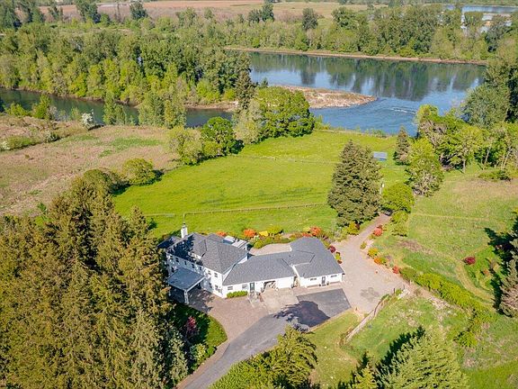 Rare Riverfront Property - Welcome to River Cove Farm! Nestled in the heart of Willamette Valley wine country & just minutes from downtown Salem, this one-of-a-kind estate offers a rare blend of lush acreage, Willamette River frontage, & breathtaking views. A gated entry opens to a long, paved driveway leading to this gorgeous Georgian-style home, which exudes elegance throughout. Spanning 19.05 acres, the property also has a cottage, barn, pastures, fruit trees, private beach & cove! The main level primary suite features a cozy fireplace and ensuite bathroom, ensuring comfort and luxury. A library with built-ins and a majestic living room provide stunning views. The elegant kitchen and formal dining room are perfect for hosting memorable gatherings. The expansive game/recreation room includes a kitchenette and full bathroom, ideal for entertaining guests. Enjoy the tranquility of the Willamette River frontage, complete with a private beach and a cove for boat tie-up.