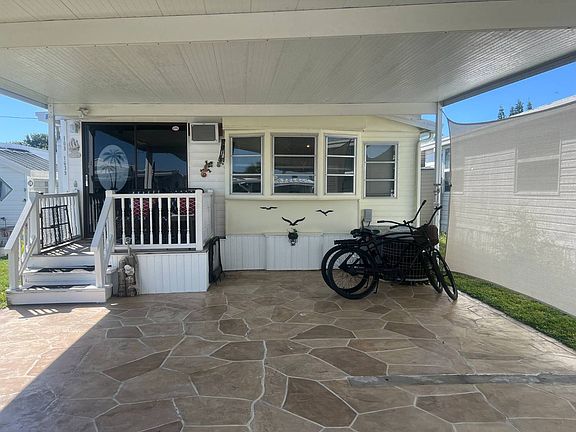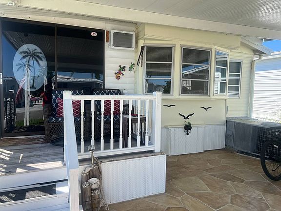 This Spacious 2 Bedroom, 1 Bath PARTIALLY FURNISHED Home is in Holiday Travel Park, an All-Ages Community with LOW $659 Lot Rent. The Home has over 770 Sq Ft with a Central Ac and Heating System and the Metal Roof was Sealed in 2023. The Home Passed a 4 Point Inspection in 2023. The Home has a Covered Front Deck, a Stamped Driveway, a Double Carport, a Covered Patio behind the Home and a Large Attached Shed with Plenty of Storage and a Washing Machine. The Add-on is 350 Sq Ft. The Front of the Add-on is a Living Area with a Window Ac Unit, a Ceiling Fan, Pergo High End Laminate Flooring, Installed in 2023, and the Exterior wall has been Insulated with Foam Board. The back of the Add-on is a Guest Bedroom for Visiting Family and Friends. The Main Section of the Home has a Sitting Area, Plenty of Overhead Storage, Lots of Windows and the Dining Table that can Accommodate Four People Nicely. The Kitchen has a New Stainless Refrigerator and a Gas Stove. In the Hallway you have a Large Walk-in Pantry. The Bathroom has a Tub-shower Combo and Vinyl Tile Look Floors. The Master Bedroom has Plenty of Closet Space, a Ceiling Fan and a New Mattress. Start Living the Florida Lifestyle and Enjoying the Gulf Breeze in this Adorable Home Located in Holiday Florida. Holiday Travel Park is a Family/All Ages Park in Holiday, FL. Park Amenities include Heated Pool, Shuffleboard, Fishing Pond and Clubhouse. LOW LOT RENT of $659 includes water, sewer, lawn and Park Amenities. A charge of $5.95 will Cover Garbage. Pet Friendly - 2 Pets Any Size- Breed Restrictions Apply. -------- CASH ONLY -------