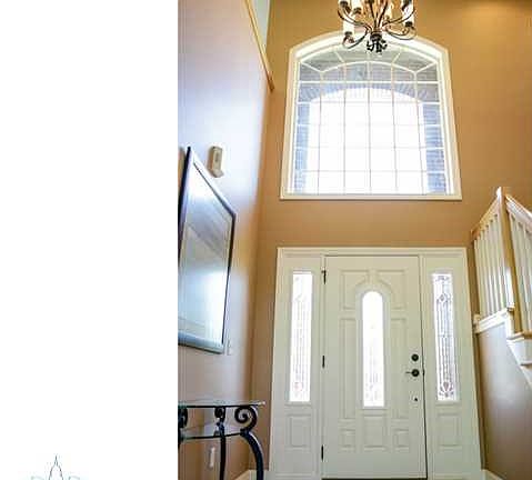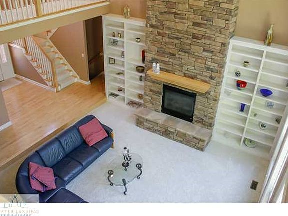 This amazing 2-story contemporary is perfect for entertaining and vacationing at home! The majestic front appearance will draw you into the home where you will find a spacious 2-story front foyer, maple flooring, leaded glass sidelights, and palladium window. Continue to the step down great room, and you will note height of the soaring ceiling, stone double-sided gas fireplace with maple mantle, and bookshelves on either side. The formal dining is conveniently separate and features an octagonal trayed ceiling. The cooks kitchen features maple floors and custom cabinets, granite countertops and center island with breakfast bar. All appliances are top shelf! The first floor master is a delight! The fireplace is cozy and the master bath luxurious. Rounding out the first floor is the mud room