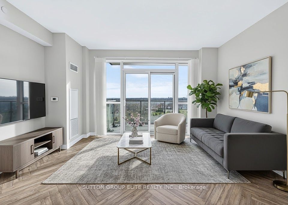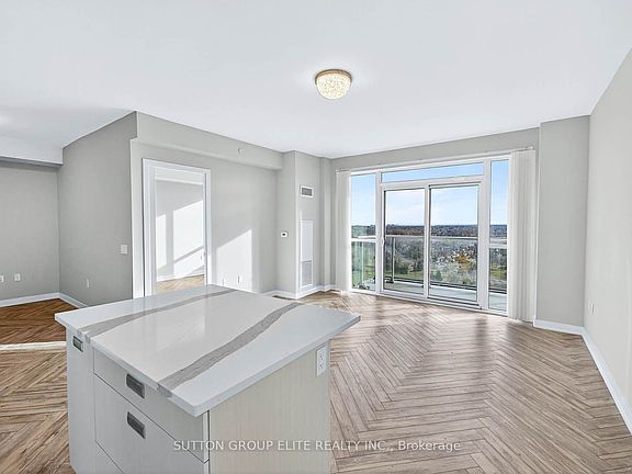 Experience the epitome of luxury living in this exquisite corner unit, perfectly situated in the vibrant heart of Erin Mills. Spanning over 900 square feet, this residence boasts breathtaking, unobstructed views from every room, showcasing the serene beauty of Lake Ontario to the south and captivating northern vistas from its dreamlike wrap-around balcony. The open-concept design is enhanced by elegant herringbone laminate flooring throughout, soaring 9-foot ceilings, and expansive windows that flood the space with natural light. The chef-inspired kitchen is a culinary delight, featuring a stunning island, high-end stainless steel appliances, under-cabinet lighting, quartz countertops, and a custom backsplash that adds a touch of sophistication. Retreat to the tranquil master bedroom, complete with a luxurious four-piece ensuite, a spacious walk-in closet, automatic roller blinds, blackout curtains, and direct access to the balcony. The second bedroom is generously sized, complemented by a versatile den that can serve as a refined dining area or an elegant home office. The main bathroom is beautifully appointed with a stand-up shower enclosed by a glass door. Additional conveniences include in-suite laundry and a front closet equipped with a custom built-in organizer. This unit also comes with a designated parking space and a storage locker. Residents will enjoy state-of-the-art amenities that promise endless entertainment for family and friends. Located just across the street from the charming Erin Mills Town Centre, you will have quick access to groceries, dining options, Credit Valley Hospital, and major highways. This property is entirely turn-key, allowing you to move in effortlessly and indulge in a lifestyle of comfort and elegance.