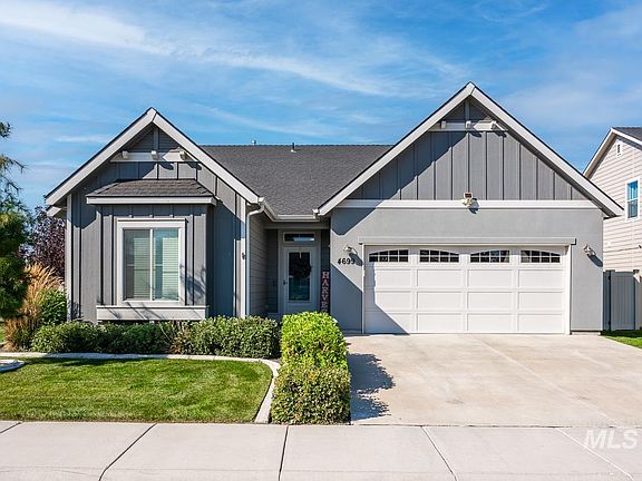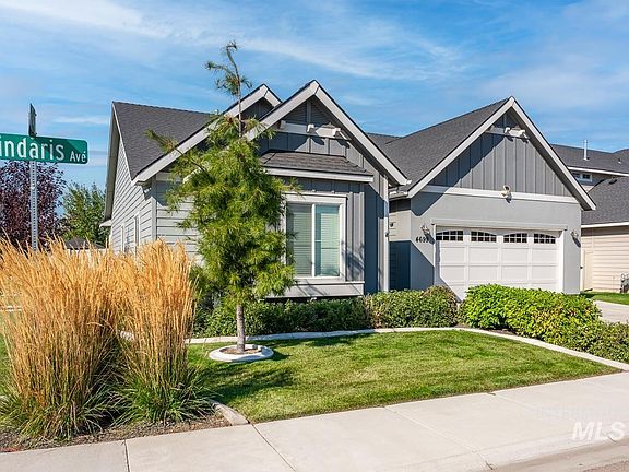 Located in Meridian’s sought-after Goldengrove community, this 2019 single-level home offers 4 bedrooms, 2 bathrooms, and 1,803 sq ft of well-designed living space. The open layout features a cozy gas fireplace and abundant natural light throughout. The kitchen is equipped with granite countertops, a spacious island, stainless steel appliances, a corner pantry, and rich dark-stained cabinetry. The primary suite includes a walk-in closet and a private bath with dual vanities, a soaker tub, and separate shower. Additional upgrades include LVP flooring, a water softener, and an epoxy-coated garage floor. This home comes fully equipped with backyard landscaping, established fencing, window blinds, and a pergola-covered patio—details that make moving in easy. Just minutes from grocery stores, coffee shops, and local dining, it’s a turnkey home in a prime location.