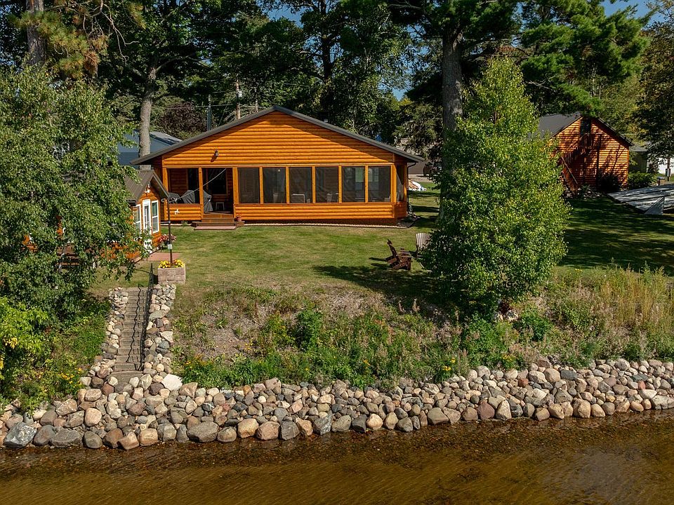 This beautiful remodeled and updated lake home on spring-fed Round Lake has it all! Gorgeous sunset views, lake side bunkhouse, sand lake bottom great for swimming, easy elevation to the lake, newly rip rapped shoreline, 1.5 story newer garage with upper level bonus storage area, and garden shed. Renovations include metal roofs, log siding, Marvin windows, remodeled lakeside bunkhouse, forced air furnace, central air, poly encapsulated crawl space with a dehumidifier to control the humidity, spray foam rim joists, kitchen cabinets, center island, quartz countertops, kitchen appliances, washer, dryer, LVP flooring, refaced gas stone fireplace, exterior stone trim and so much more!!! Great location with easy access to the snowmobile trails or simply boat over for dinner at the Round Lake Resort Bar & Restaurant. This is a must see lake home!!!