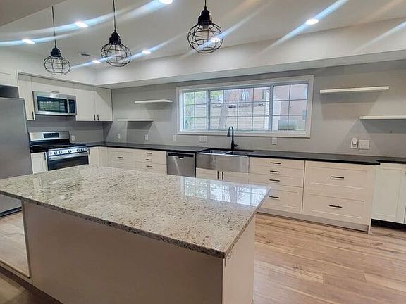This stunningly updated home is just steps from downtown Hopkins, offering the perfect blend of modern finishes and classic charm. Enjoy your morning coffee on the welcoming front porch, then step inside to an open-concept kitchen featuring stainless steel appliances, sleek countertops, and a spacious islandideal for cooking or entertaining. The layout flows seamlessly into the main living area, where a cozy fireplace and large windows create a warm, inviting space.
