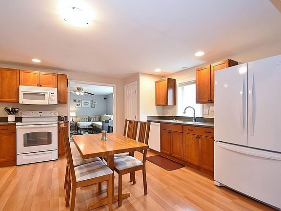 Water view property with access to the lake from both across the street and from the town beach. This home has been lovingly cared for with many updates. There are 7 rooms including spacious foyer, eat-in kitchen, living room, heated porch, open office, full bathroom, 3 bedrooms (2 on 1st floor, 1 on second floor). The second bedroom could be used as a bedroom, recreation room, family room. Some of the upgrades made include: Insulation, 30 yr architectural roof, windows, skylights, exterior siding, hot water heater, appliances, garage door openers, repainted garage, new carpet (stairs/master bdrm), thermostats/heaters, driveways,exterior staircases, retaining walls, front walkway, lawn completely reseeded, french doors, shelving, sunporch renovation including tongue and groove pine ceiling, tiled floor, track lighting, heat. 2 car detached garage with garage openers and storage. Great location!