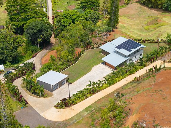 Conveyed with TMK 1-4-7-5-41-2. See MLS #202519990. Prominently situated at the base of the majestic Ko‘olau Mountains, this newly built Luxury Estate is a rare opportunity for a discerning Buyer seeking views, land, location, and privacy. Spanning over 4 acres above a neighborhood of Cacao Farming, this private Retreat offers breathtaking panoramic views of the ocean, and lush mountain cliffs. A thoughtfully designed residence showcasing soaring ceilings, mahogany framed glass doors from floor to ceiling for seamless indoor-outdoor living. Custom finishes include monkeypod stair treads, tigerwood lanais, LED recessed lighting(converts to 12 volts) and 8’ doors throughout. The Chef’s kitchen features 2 sink stations, an oversized island - perfect gathering area for the Holidays or entertaining. A 6-burner range with pop-up hood. Primary suites, 1 on each level, offer spa-inspired bathrooms, walk-in closets and a private balcony upstairs. SUSTAINABILITY meets SOPHISTICATION. Owned PV system, tropical landscaping and gated driveway entry. BONUS unattached 900sf workshop and oversized garage. Tucked away for serenity yet minutes from conveniences, this is Hawai‘i living at its finest.