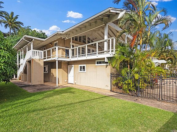 Imagine having your morning coffee looking out over the ocean on your expansive covered lanai or catching some rays on your equally expansive open lanai. Cool ocean breezes all day long. One of the largest lots and homes on Kam Hwy in Kahaluu. Spacious interior and exterior, Great and large lanai with views of Kaneohe bay, offshore islands and distant surf breaks. Yard completely fenced and gated. Large portion of yard stamped concrete. 2 car garage with enough space for an additional 2 vehicles in driveway. Split air conditioning on 2nd floor. Ceiling fans for all first floor bedrooms. 1st floor block and stucco. Layout allows flexibility for multigenerational living, guest quarters or additional rental income. Convenient location, short drives to MCB, Windward Mall, Likelike, H3. Listing agent is owner. For sale as is. 1031 exchange