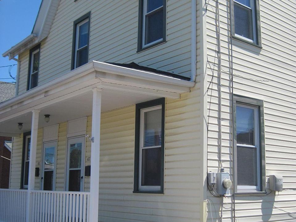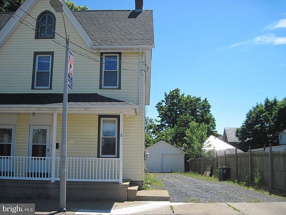 Charming 3-Bedroom Quakertown Borough Twin. New roof (May 2024) and new carpet throughout second floor and stairs. Living room wood flooring . New Luxury Vinyl Tile (LVT) in first floor partial bath and new faucet. Second floor main bath with new vanity and faucet. Laminate plank flooring in kitchen and dining room. Oil hot water heat with old-fashioned radiators. Oversized 18'x18' garage with large multi-car crushed stone driveway. Large in-town lot with private rear yard. Covered front porch and large wood deck. Property recently subdivided from TM# 35-004-236 and is known as 35-004-236-001, Lot #2; Gross Living Area (GLA) estimated at 1290 sf. Property will be reassessed by Bucks County. Taxes shown are estimated at $3677 (may be higher, might be lower). Taxes are an estimate only. Do not rely on Public Records for site area, GLA or taxes. Easement to be recorded for access by 45 S 9th through common cellar hallway. Maintenance agreement to be recorded for rear deck/steps. Rear porch roof ceiling to be enclosed and capped. New recessed light fixture to be installed in porch ceiling. Rear porch downspout will drop down left side. New recessed light fixture to be installed over kitchen sink.