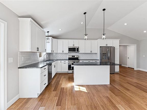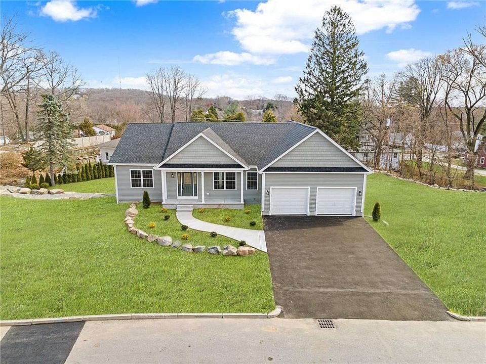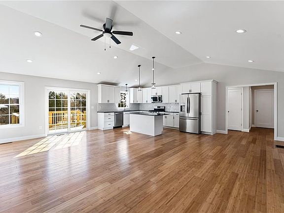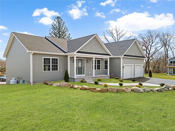 Falcon Nest offers a tranquil retreat in the heart of Johnston, RI. Newly constructed one-level Ranch Home welcomes you w/a spacious 2-car garage, providing ample parking & storage options. Open-concept kitchen boasts beautiful cabinetry, granite countertops, & stainless-steel appliances, making it a chef's dream. Enjoy meals on your deck, located just off the kitchen, perfect for al fresco dining or relaxing w/a good book in the sunshine. The kitchen seamlessly flows into the living area, complete w/a cozy fireplace, making it ideal for entertaining guests or spending quality time w/loved ones. Additionally, there's a formal dining room & den for added versatility & space. Retire into your primary bedroom, where you'll find a walk-in closet & a spa-like bathroom, perfect for unwinding after a long day. Two additional spacious bedrooms & a full bathroom provide ample space for family members or guests. Bamboo flooring throughout adds warmth & elegance to the living spaces. One of the surprises of this home is the full walk-out basement that opens onto a private patio, into your yard. The additional space could be finished for additional living space, complete w/its own entrance & a third garage, providing endless possibilities for customization & expansion. Location is key at Falcon Nest, w/its convenient proximity to major highways & amenities for everyday convenience. Come & experience the luxury, comfort, & potential of living at Falcon Nest, a true oasis in Johnston, RI.
