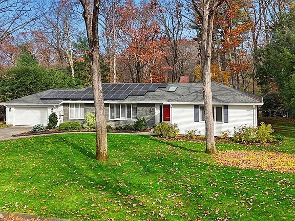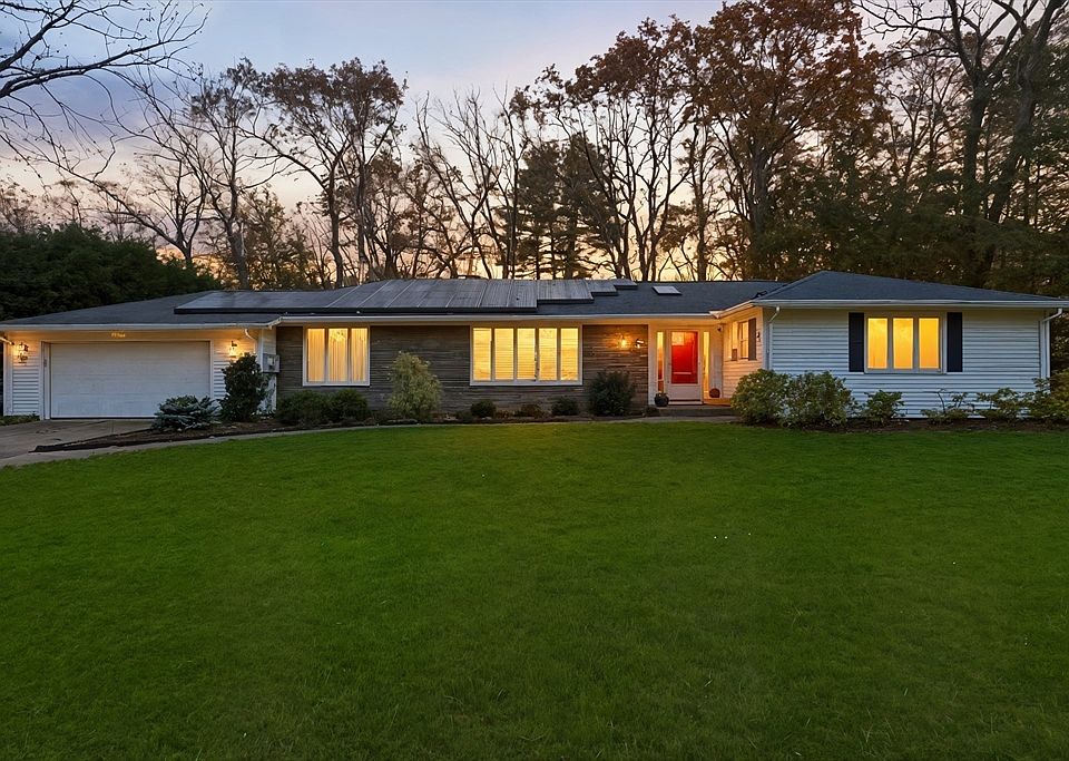 Look no further. This 4-bed,3.5-bath ranch backs up to Turner Park and welcomes you with a flowing floor plan, hardwood floors, and natural light at every turn. The eat-in kitchen offers generous counter space, double ovens, and stainless appliances, opening to a warm, an inviting family room where a floor-to-ceiling stone fireplace, vaulted ceilings and skylight set the tone. A charming three-season room extends the living space for fair-weather gatherings. The serene primary suite features ambient cove lighting, a walk-in closet, and a beautifully updated bath with double sinks and a glass shower, while a second bedroom enjoys its own en-suite. A bright mudroom/office with a huge closet adds everyday ease. Outside, the fenced, wooded yard, sprinklers, and Stampcrete patio create a private retreat. With first-floor laundry, attached 2 car garage, many soaring ceilings, a partially finished basement, and a center-of-town location, this home truly has it all.
